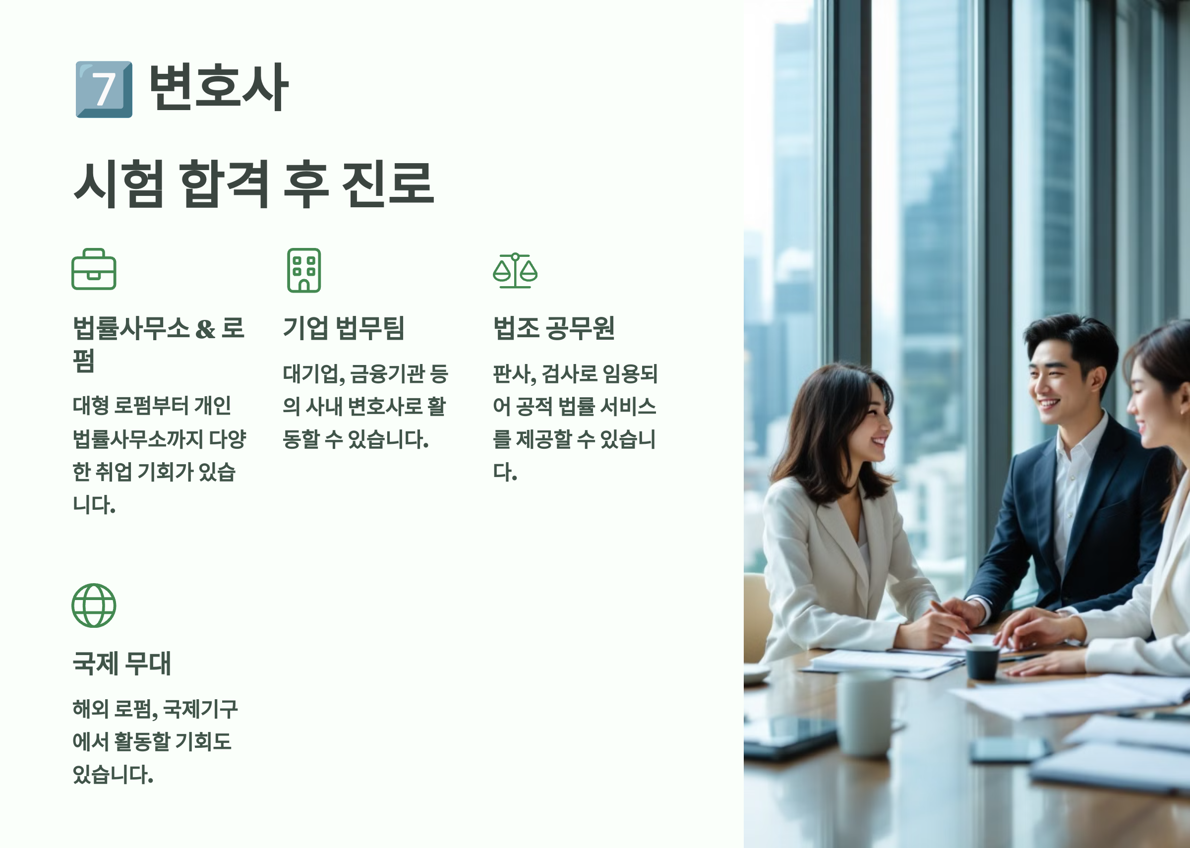 7️⃣ 변호사 시험 후 진로 & 전망