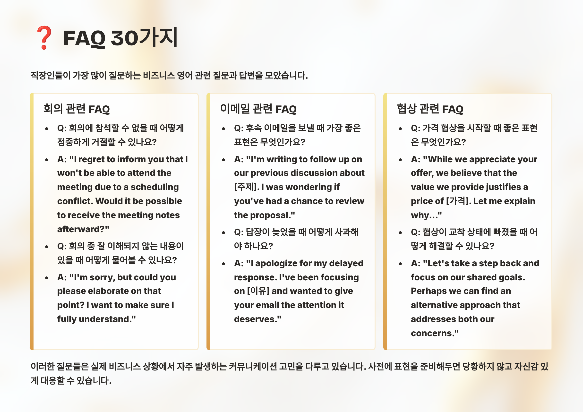 ❓ 비즈니스 영어 FAQ 30가지