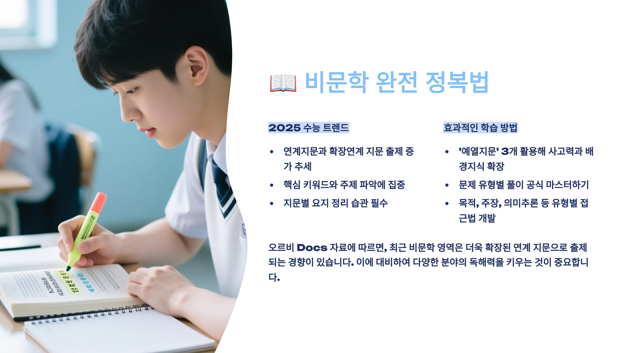 비문학은 수능 국어의 핵심이자 많은 학생들이 어려워하는 영역이에요. 경제, 과학, 기술, 철학 등 다양한 분야의 전문적인 글을 짧은 시간 안에 이해해야 하기 때문이죠. 하지만 체계적인 독해 전략을 익히면 누구나 비문학을 정복할 수 있어요! 📚