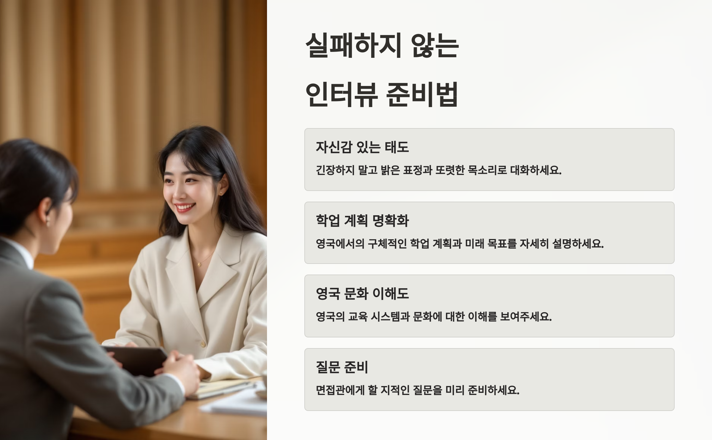 ✔ 인터뷰는 말보다 태도, 표정, 말투가 중요할 때도 있어요. 특히 Chevening은 “영국 유학 후 귀국 계획”에 대한 진정성을 많이 봐요! 🇬🇧