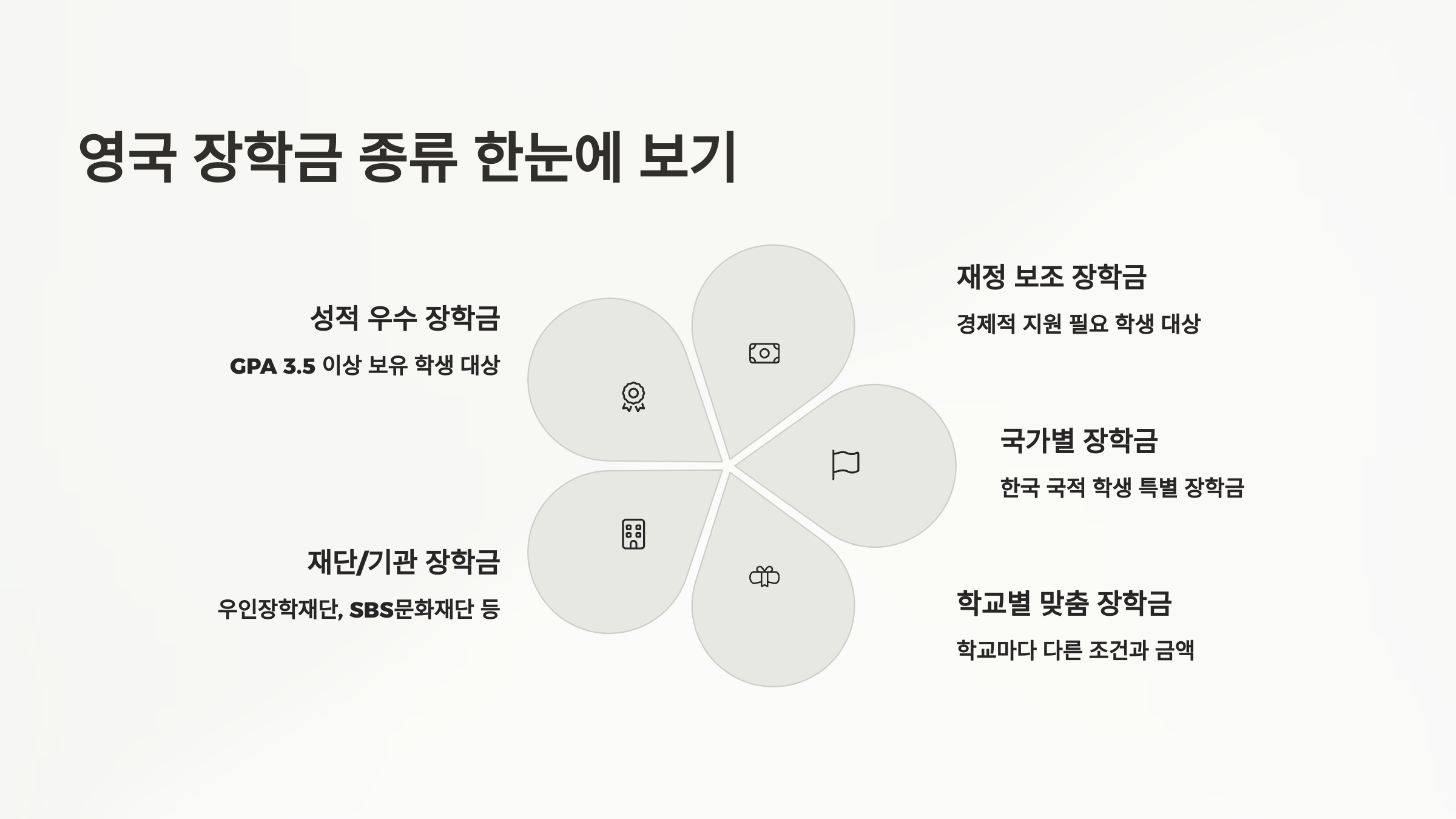 영국 장학금은 정부 지원, 대학 자체 장학금, 민간/국제기관 후원으로 나눌 수 있어요. 각 장학금마다 지원 대상, 금액, 조건, 경쟁률이 다르기 때문에 내가 지원할 수 있는 범위를 명확히 파악하는 게 가장 중요해요! 📊