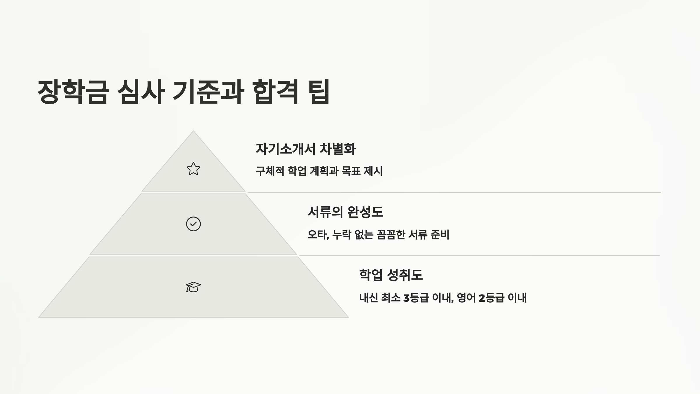 다음은 📌 장학금 심사 기준과 합격 팁 무엇을 평가하고, 어떻게 어필해야 합격 확률이 올라가는지 알려줄게요!