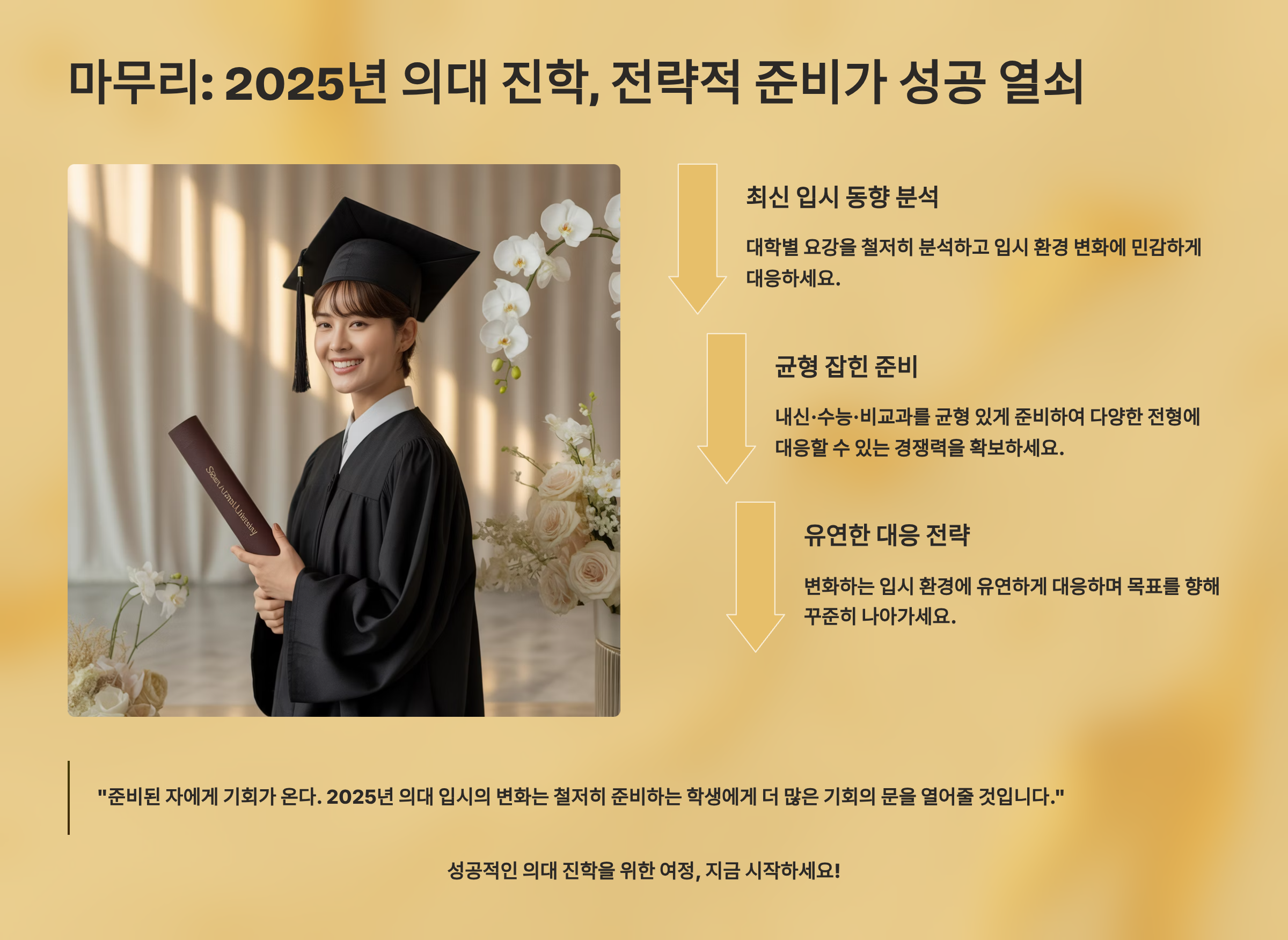 이 글이 의대를 꿈꾸는 모든 학생들에게 도움이 되었기를 바라요. 궁금한 점이 있다면 언제든 질문해주세요. 여러분의 성공적인 의대 합격을 기원합니다! 🌟