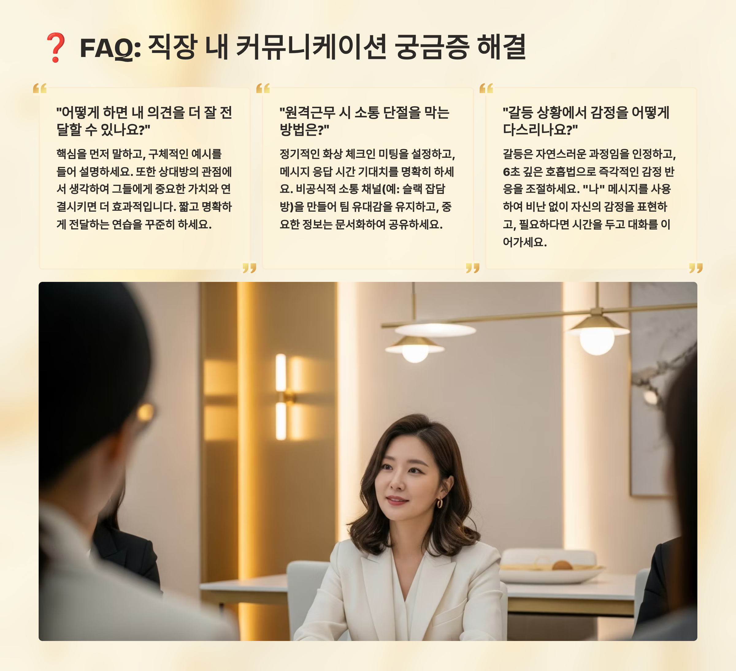 ❓ FAQ - 직장인 커뮤니케이션 완벽 가이드 30선