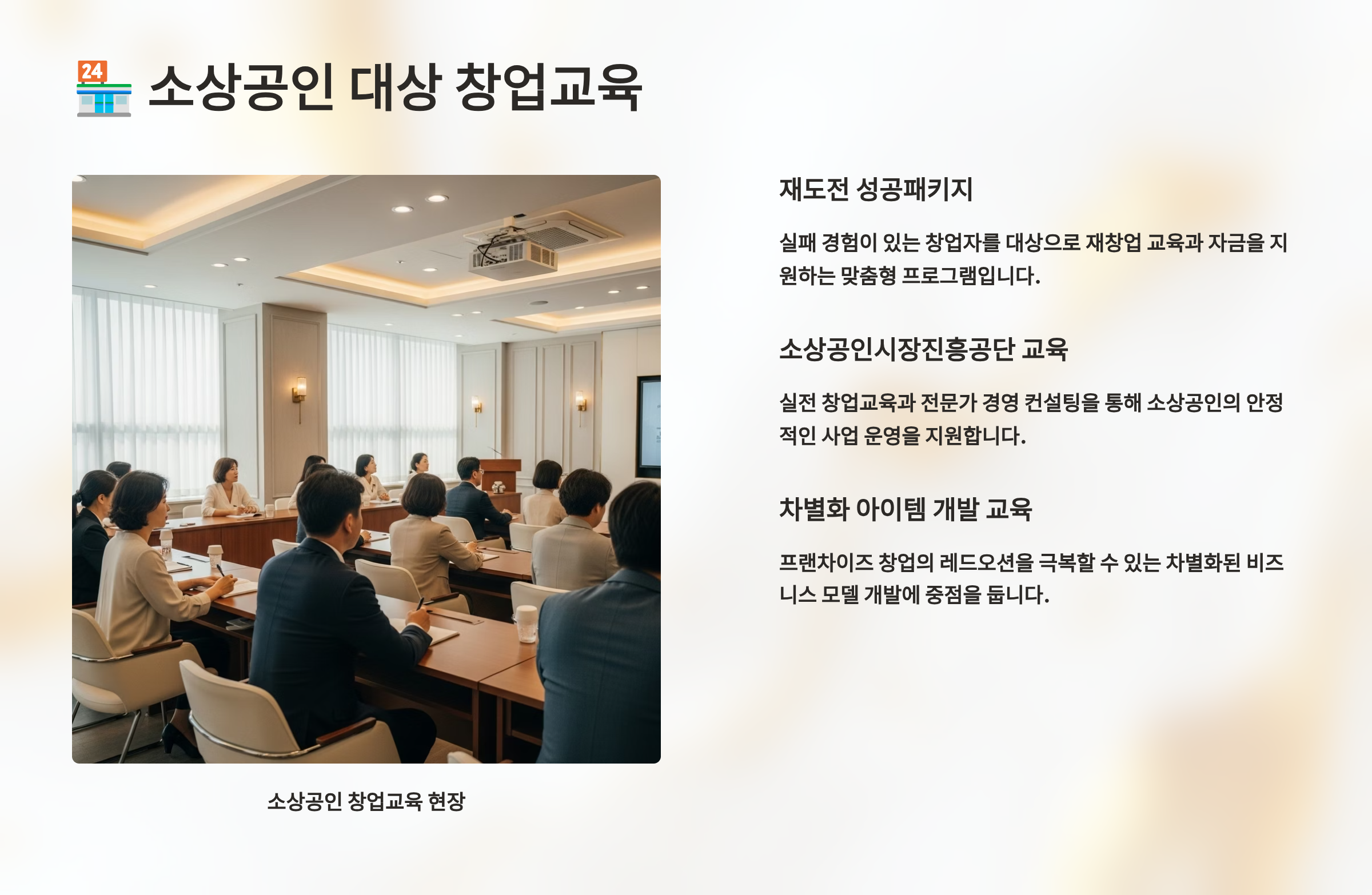 프랜차이즈 창업 교육도 체계적으로 진행돼요. 가맹본부 선택법, 계약서 검토 요령, 수익성 분석 등 프랜차이즈 창업의 A to Z를 배울 수 있습니다. 공정거래위원회와 연계해 불공정 계약 예방 교육도 실시하고, 우수 프랜차이즈 본부와의 매칭 프로그램도 운영해요. 프랜차이즈 창업을 고려 중이라면 꼭 들어야 할 필수 과정이랍니다! 🎯