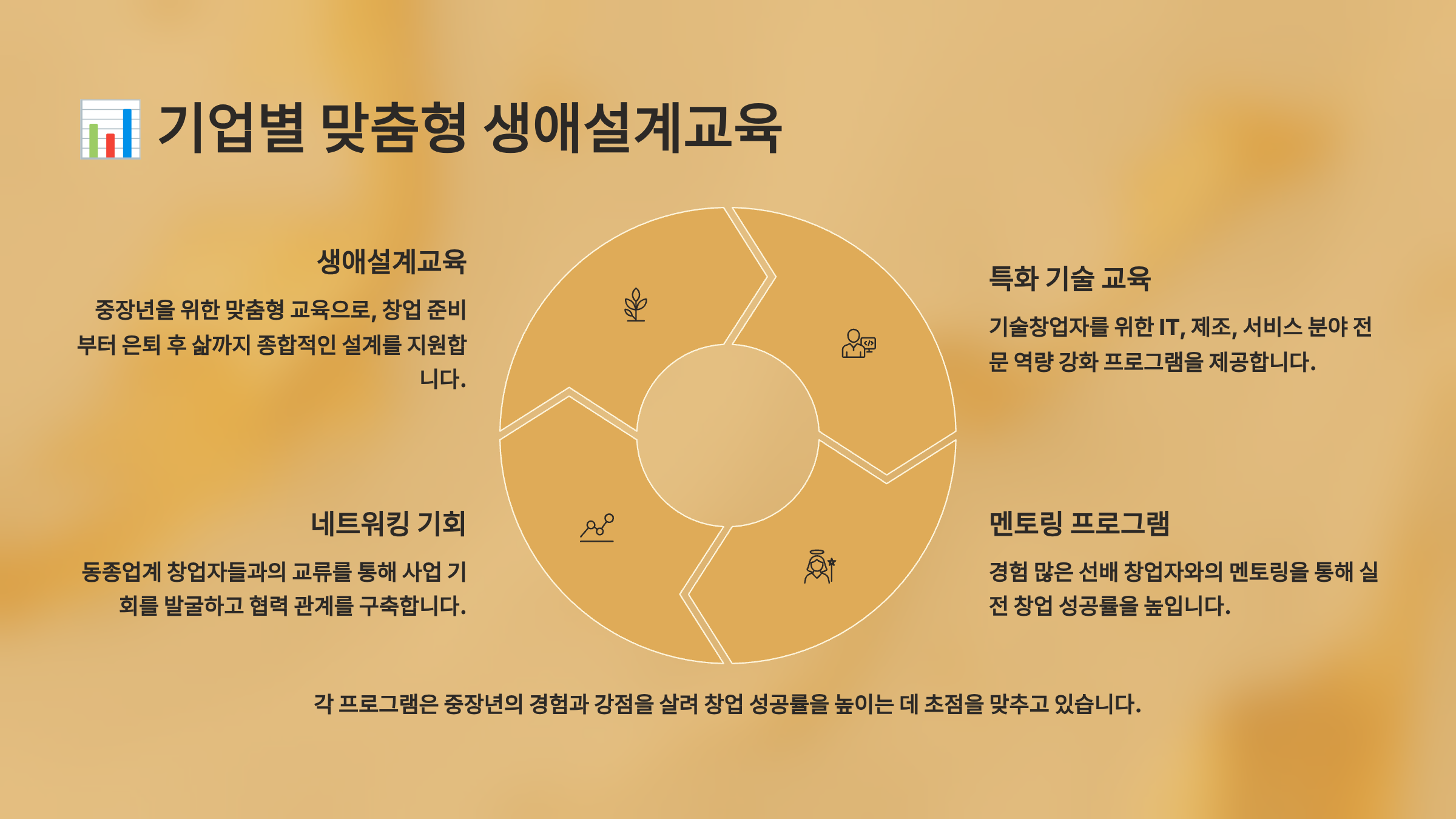 삼성, LG, SK 등 주요 대기업들은 자체 생애설계 센터를 운영하고 있어요. 삼성의 '라이프 디자인 센터'는 6개월 과정으로 창업, 재취업, 귀농귀촌, 사회공헌 등 4개 트랙으로 운영됩니다. 특히 창업 트랙은 사내벤처 경험자들이 멘토로 참여해 실질적인 도움을 제공해요. 퇴직금을 활용한 창업 자금 계획까지 세밀하게 컨설팅해준답니다! 💼