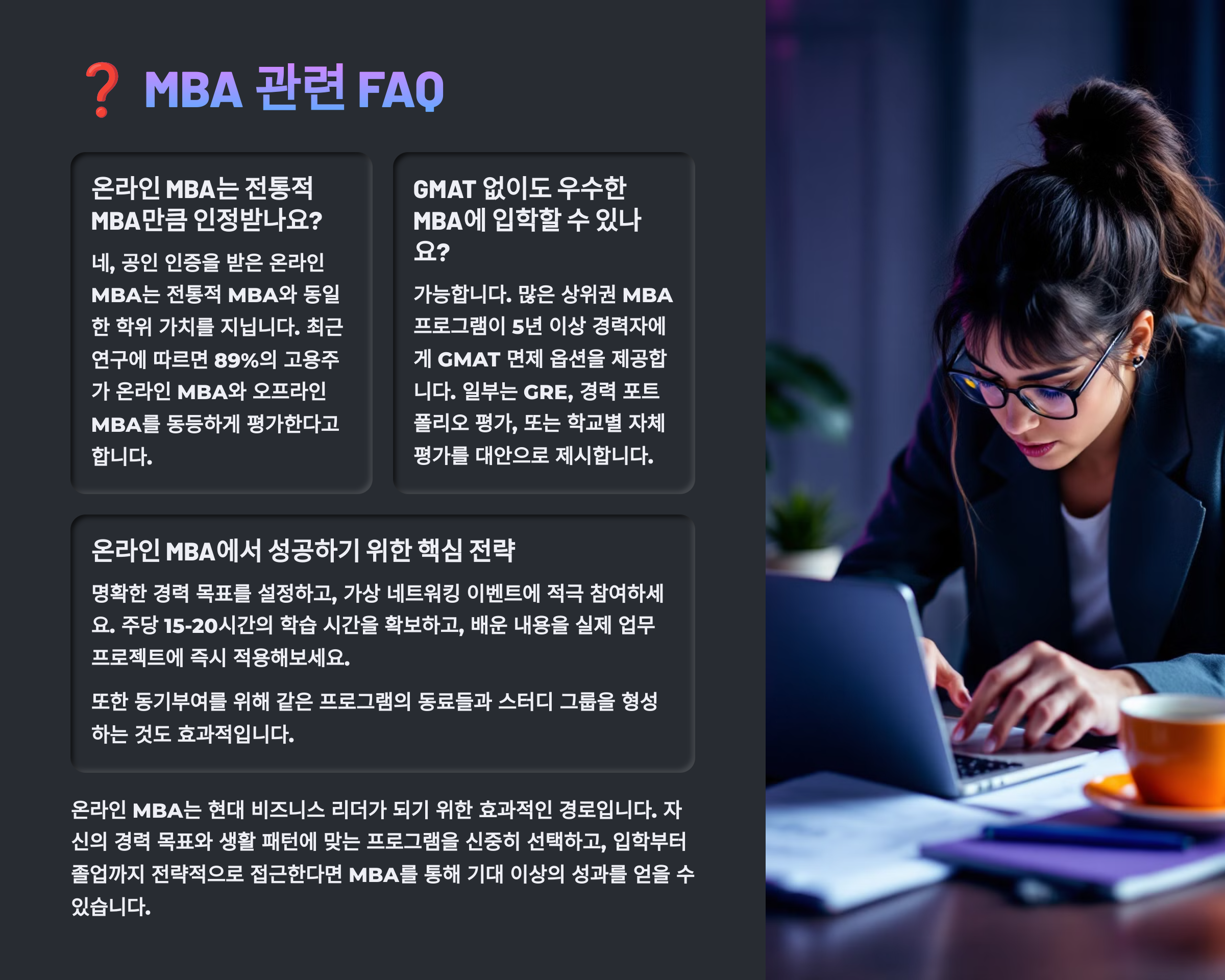 📈 온라인 MBA 장점 정리표