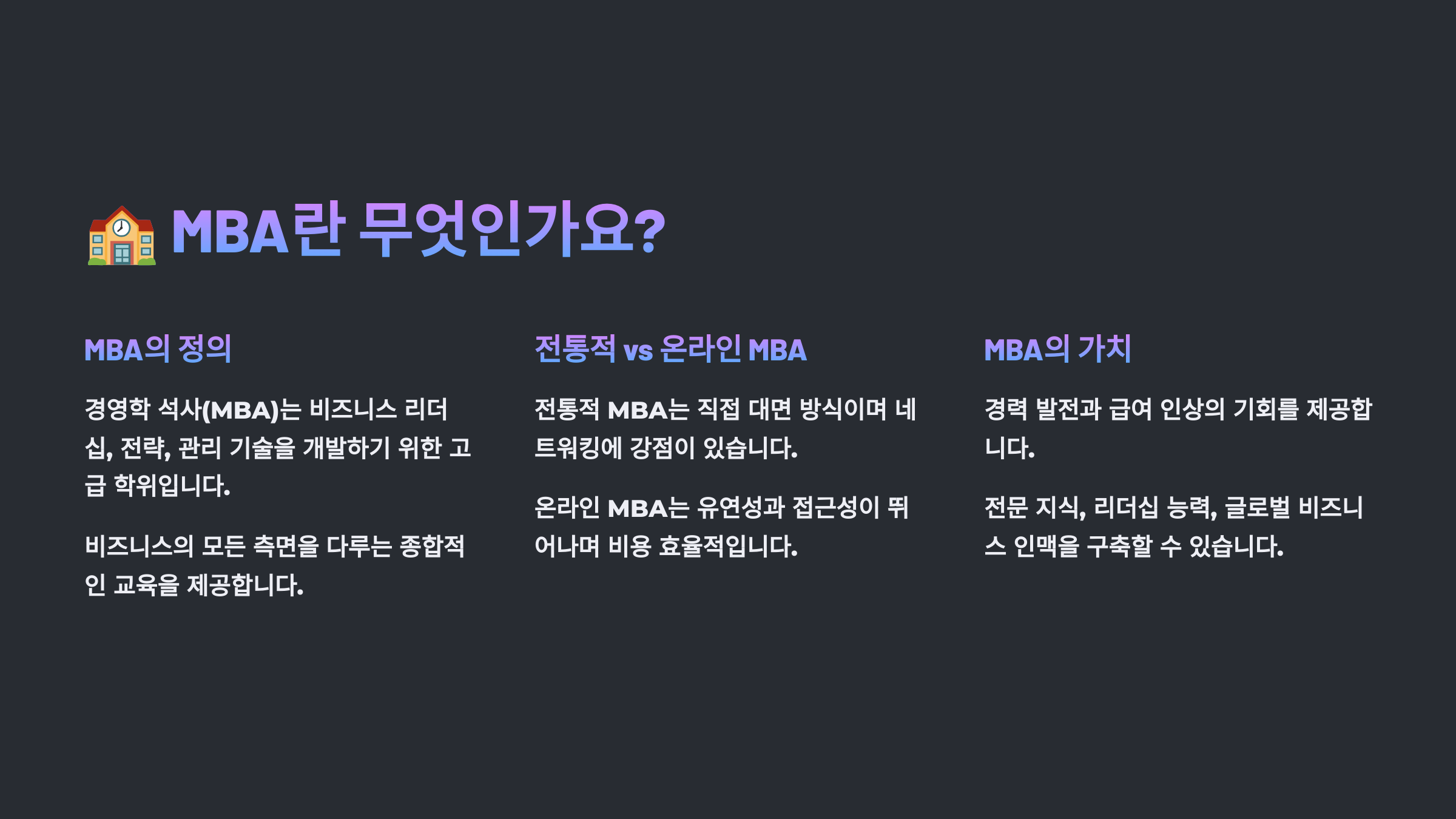 🏫 MBA란 무엇인가요?