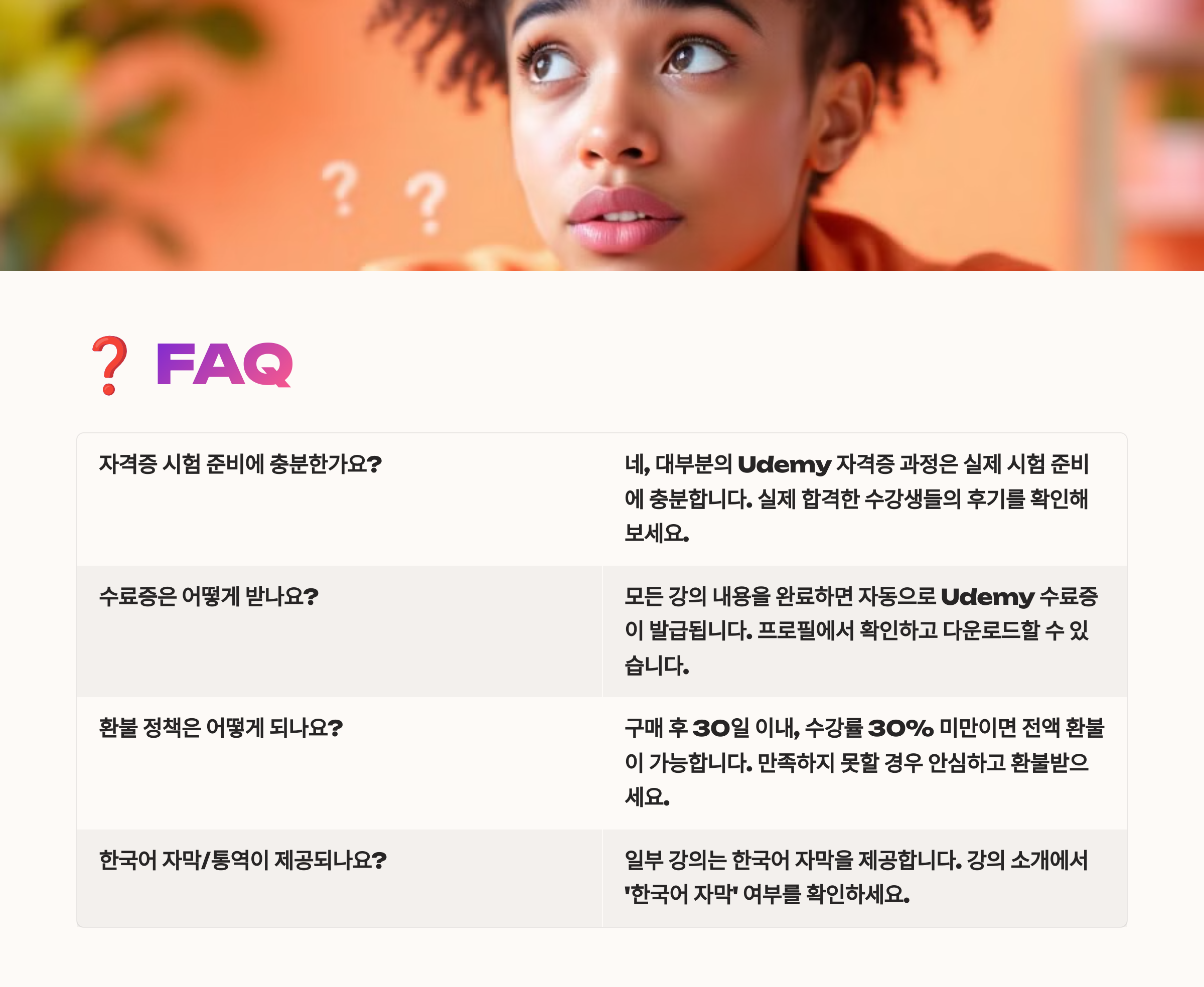 💬 오늘 알려준 꿀팁들 잘 활용해서, 똑똑하게 자격증도 따고, 커리어도 쑥쑥 성장해보자구요. Udemy는 진짜 공부러들을 위한 플랫폼이에요!