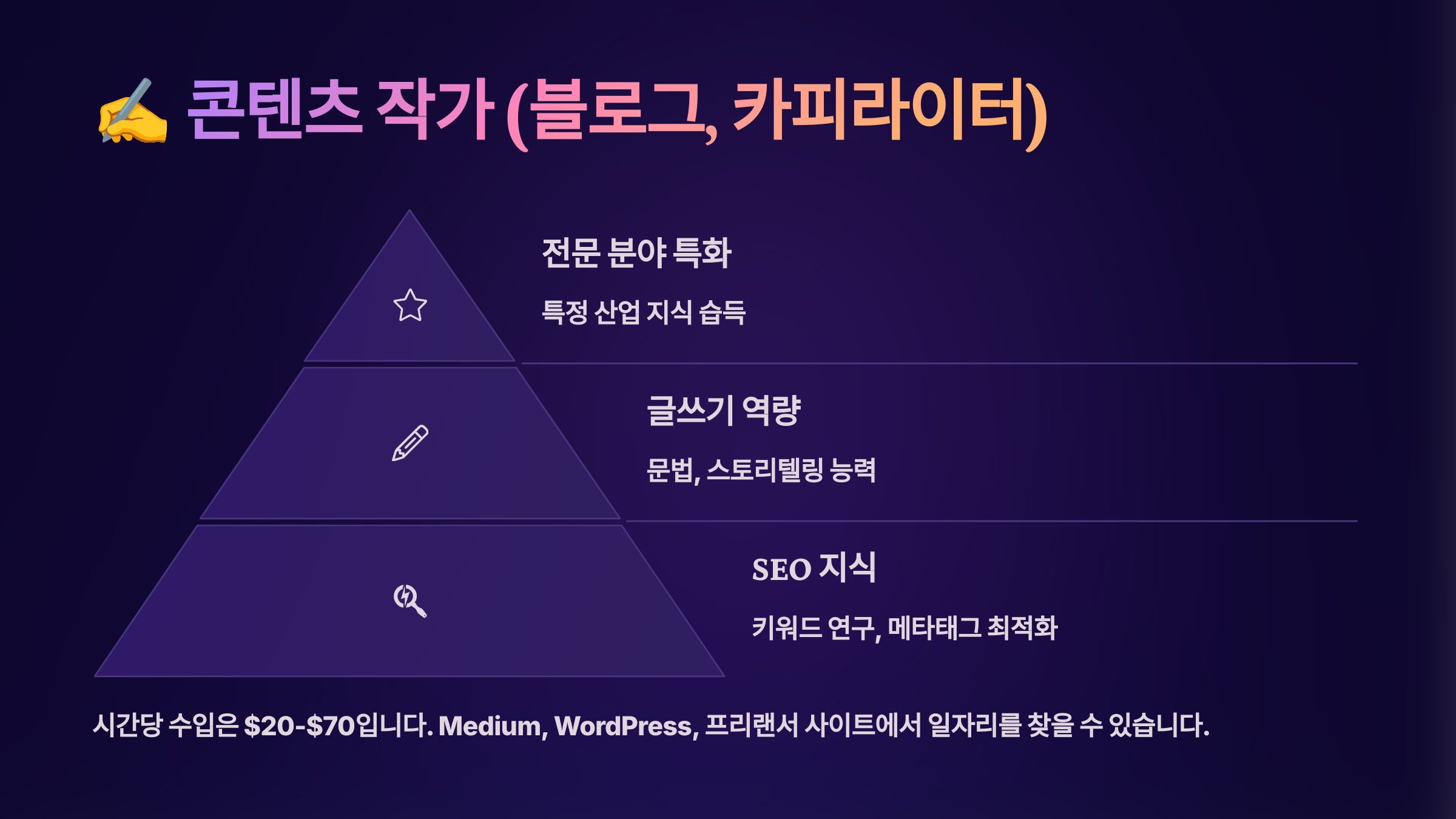 ✍️ 콘텐츠 작가는 ‘글’로 가치를 전달하는 원격 직업이에요. 누구나 시작할 수 있지만, 꾸준히 쓸 수 있는 사람만 살아남는 직업이기도 해요.