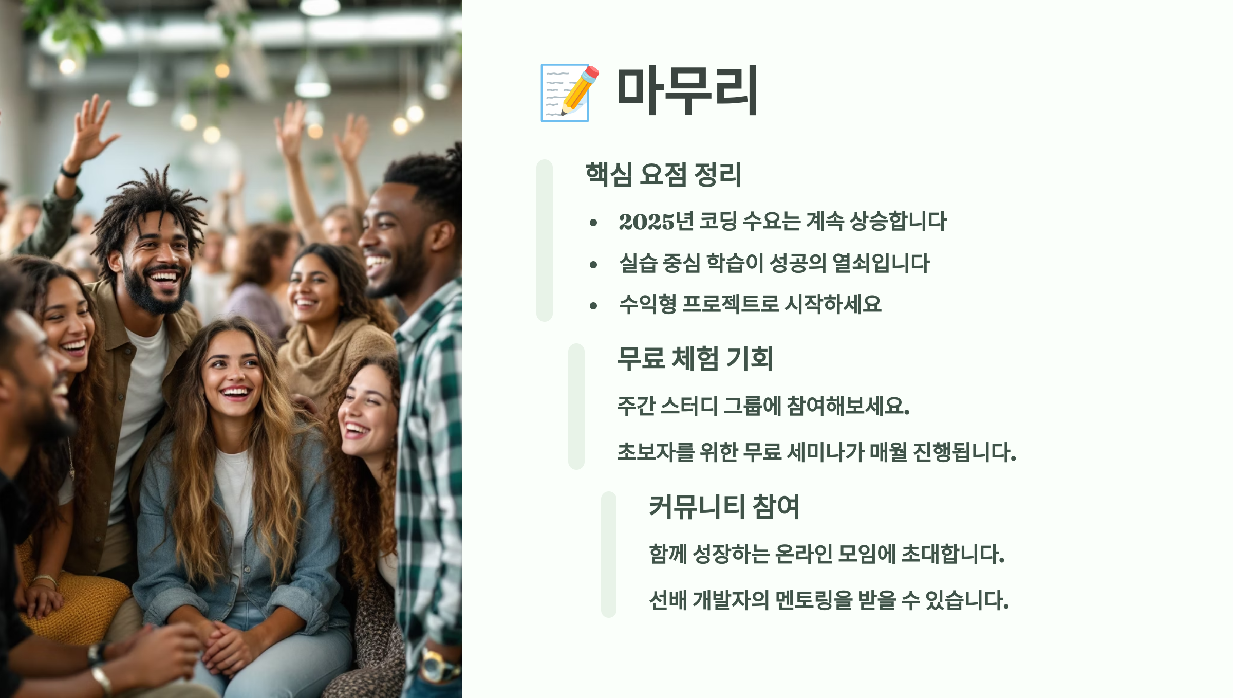 지금 이 글을 읽는 당신이 만약 “나는 개발 쪽은 영 소질 없어…”라고 생각했다면, 오히려 지금이 기회예요. 과거보다 훨씬 쉬운 도구들과 친절한 강의들이 넘쳐나니까요. 🤗