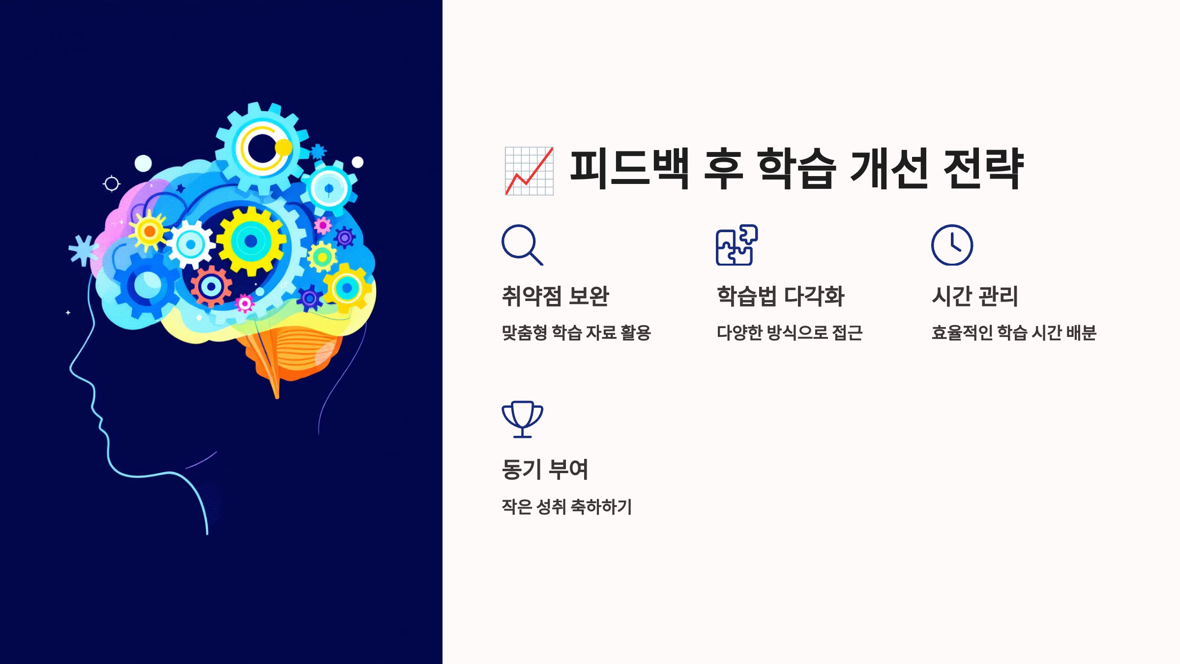 📈 피드백을 통해 학습 성과를 점검했다면, 이제 어떻게 개선할지가 중요해요. 학습 루틴을 수정하고, 더 효과적인 학습법을 적용해보세요!