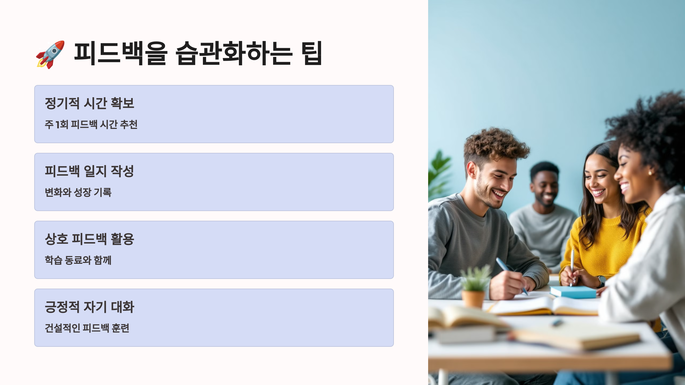 📌 피드백을 꾸준히 유지하려면 습관화가 필요해요! 다음 섹션에서 피드백을 습관화하는 팁을 알아볼까요?