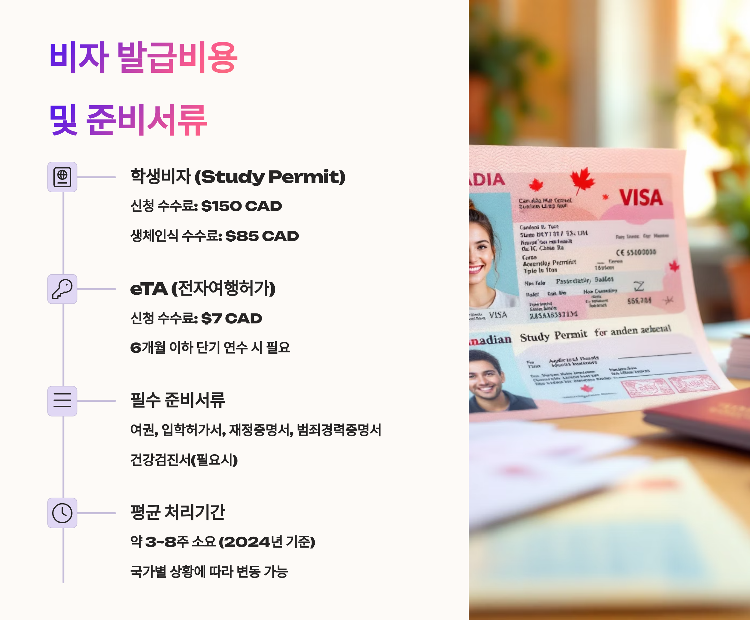 | 전자여행허가 (eTA) | 6개월 미만 연수자 | $7 CAD | 수 분~1일 |