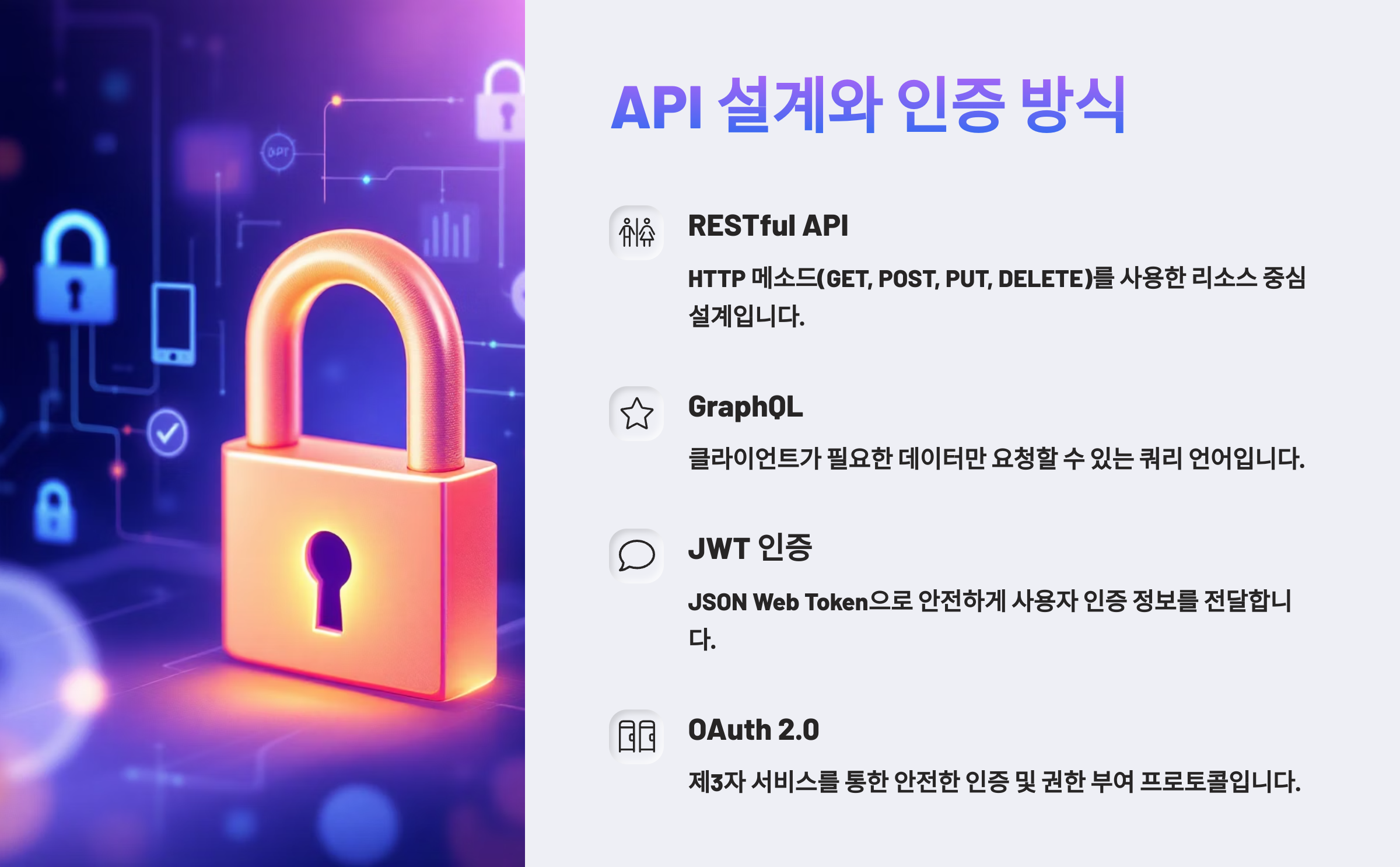🔐 다음은 데이터 저장만큼 중요한 통신! API 설계와 인증 방식에 대해 알려줄게요. 로그인, 회원가입, 토큰 인증까지 다 포함이야 🔑
