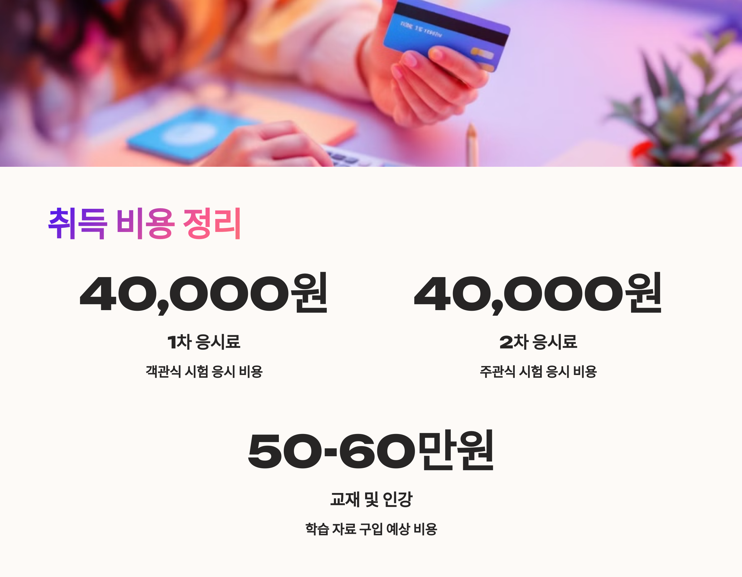 📌 다음 섹션에서는 “💸 취득 비용 정리”를 안내해드릴게요. 인강, 교재, 응시료 등 현실적인 예산표도 함께 정리해드릴게요!