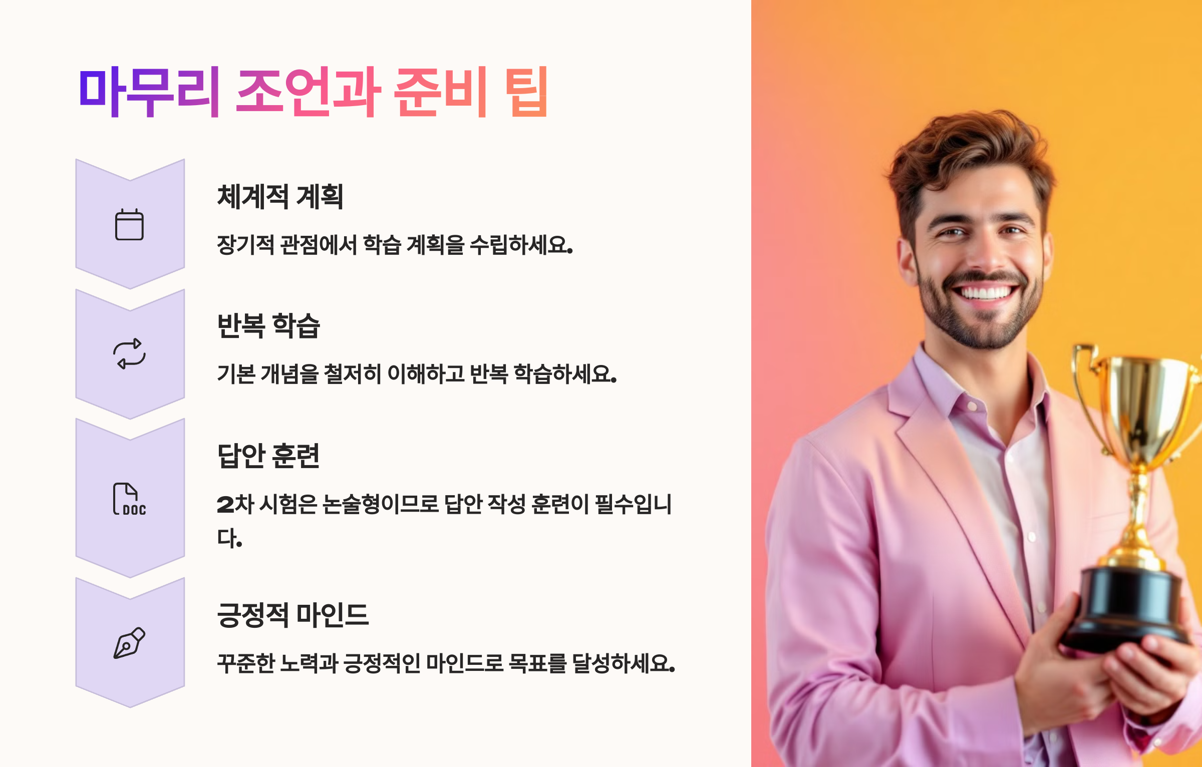 📌 마지막 섹션 “✨ 마무리 조언과 준비 팁”에서 실제 수험 전략과 동기 부여 한 번 더 정리해드릴게요!