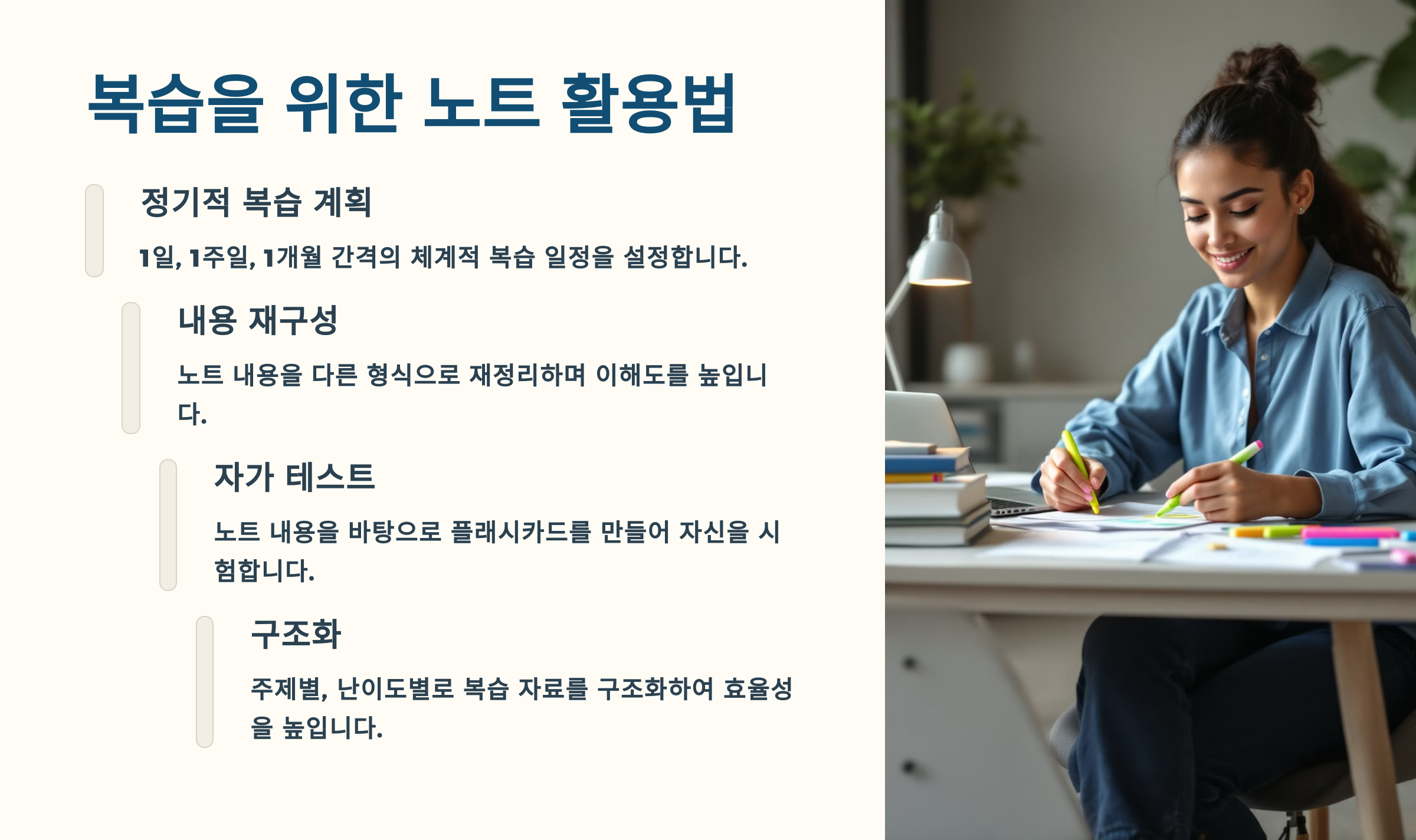 노트를 활용한 복습 습관을 만들면 시험 전 벼락치기 없이도 실력을 유지할 수 있어요! 🏆
