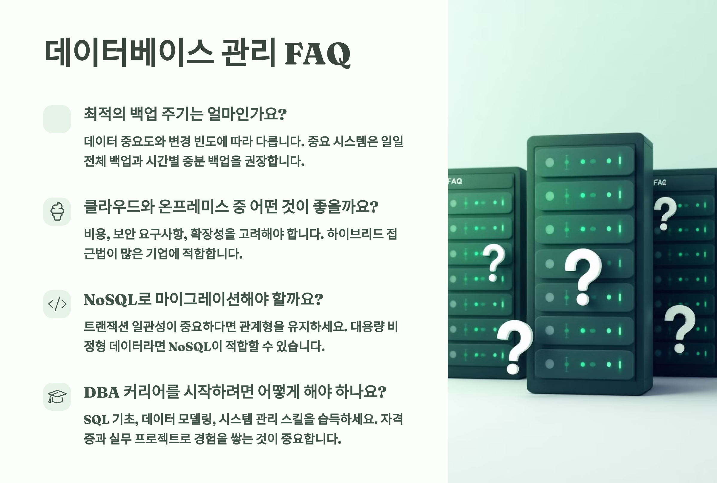 📌 실무에서는 단순한 DB 기술보다 '어떤 문제를 어떤 구조로 해결할 것인가'가 더 중요해요. 각 업종마다 최적의 솔루션은 다르지만, 공통점은 모두 '데이터 중심 사고'라는 점이에요. 이게 바로 DB 전문가의 기본 소양이랍니다 😊