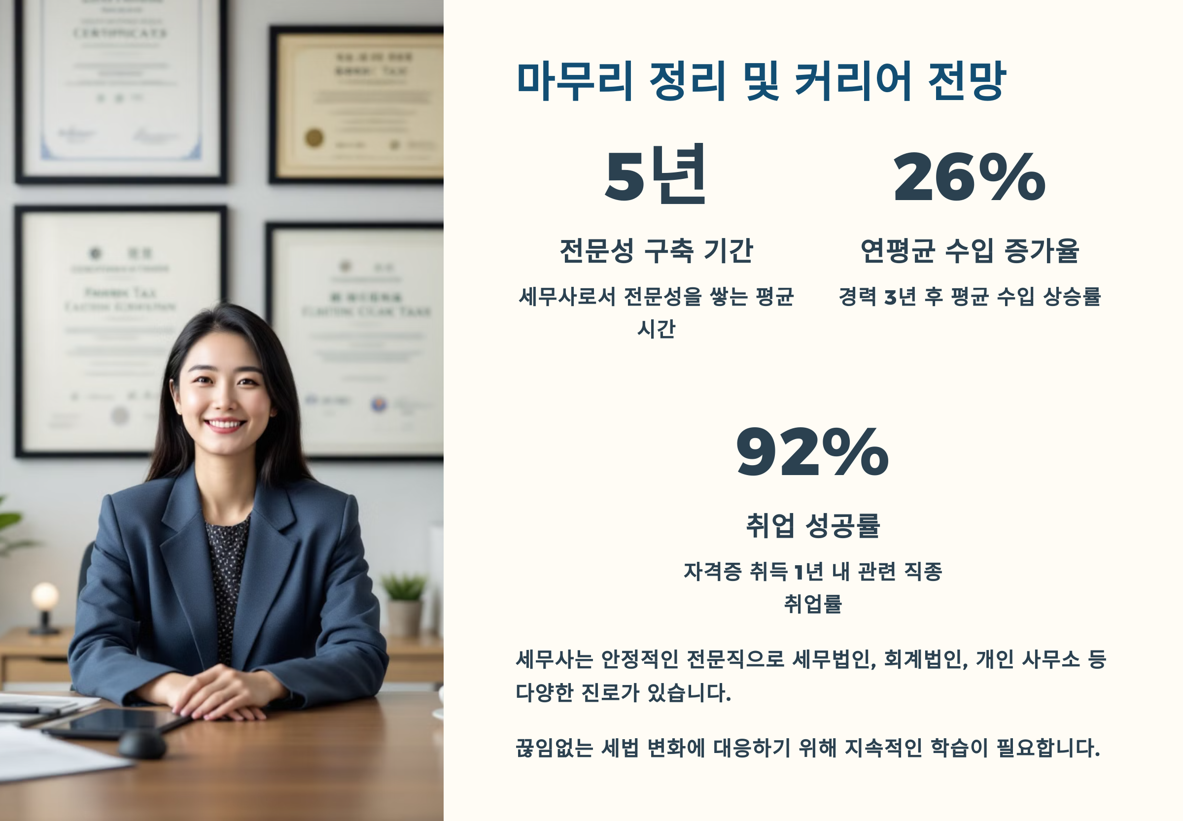 📌 회계와 세법에 강한 세무사 자격증은 국내 실무에 매우 유용합니다.