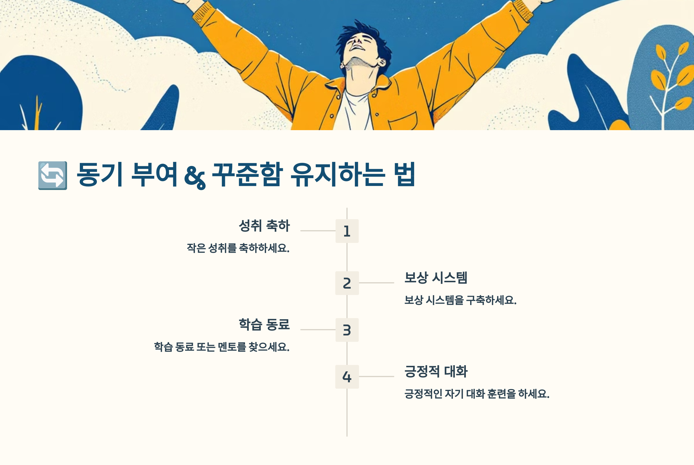 그럼, 지속적으로 공부할 수 있는 동기 부여 방법을 알아볼까요? 😊