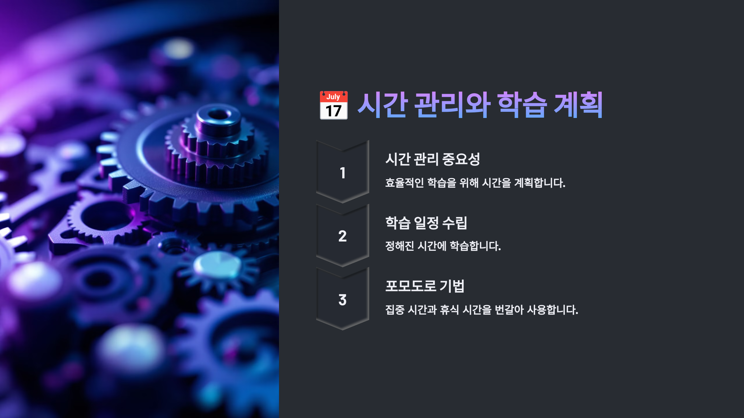 ⏳ 그런데 막상 공부를 하려면 딴짓을 하게 되거나, 시간이 훌쩍 지나가 버리는 경우가 많아요. 이를 해결하기 위해 과학적으로 검증된 시간 관리 기법을 활용하는 것이 좋아요.