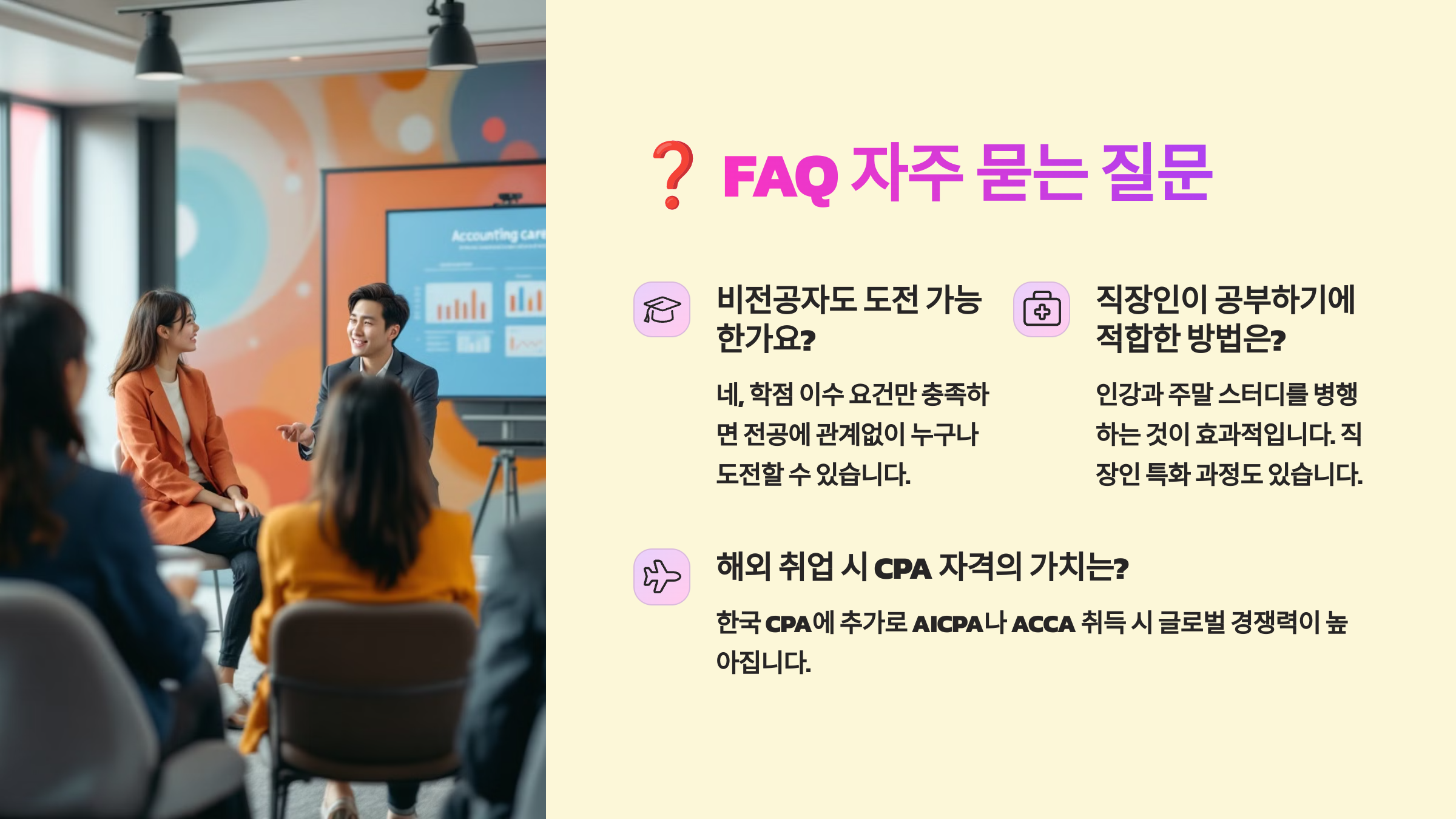 📌 다음은 “❓ FAQ 자주 묻는 질문”입니다. CPA 준비하면서 정말 많이 받는 질문들을 정리해드릴게요!