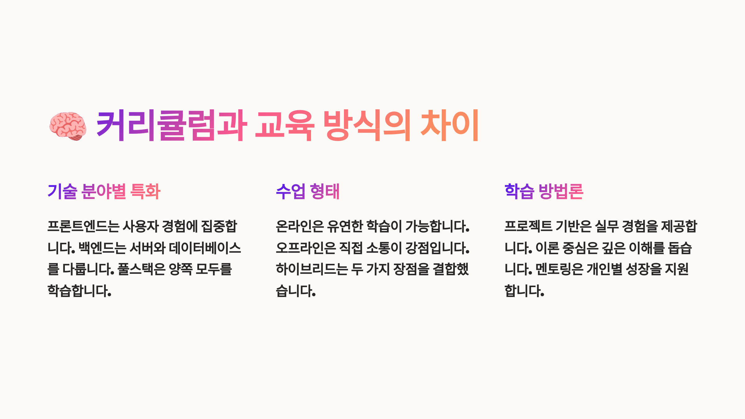 🧠 커리큘럼과 교육 방식의 차이
