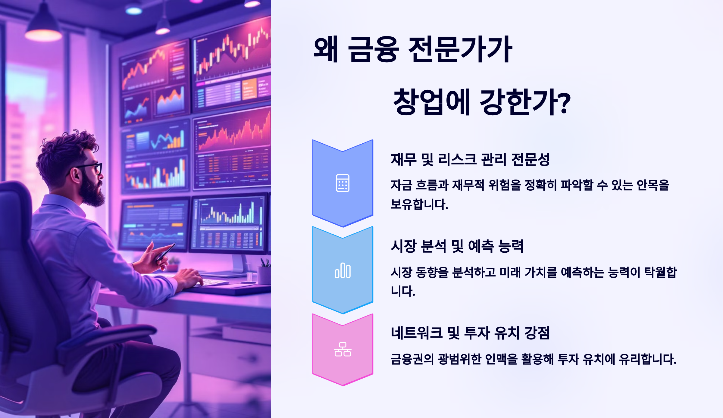 📌 즉, 금융 전문가라면 단순히 운영자가 아니라 전략 설계자 + 재무기획가로 스타트업을 리드할 수 있어요. 이건 기술 창업자들과 차별되는 아주 큰 무기랍니다.