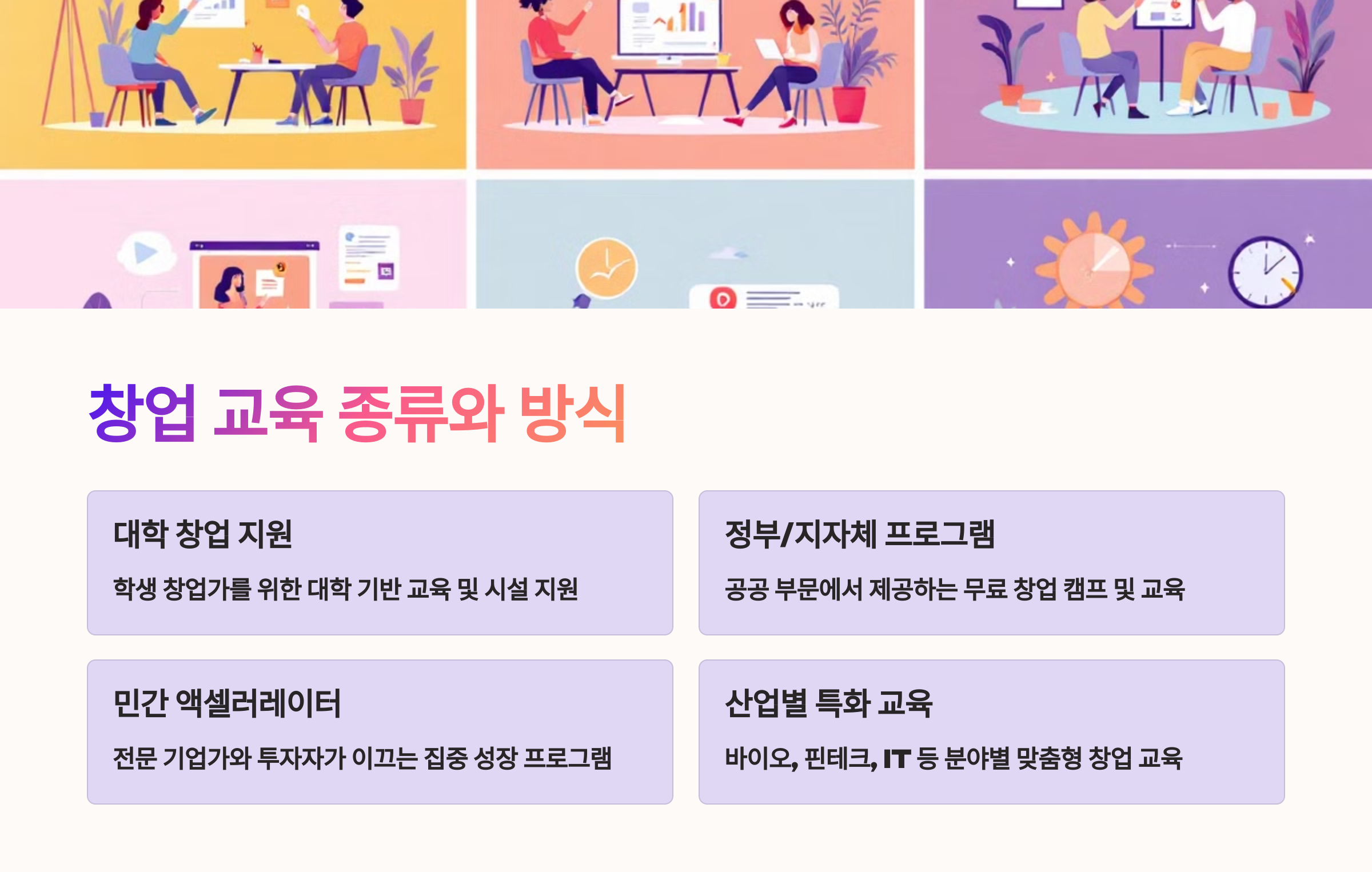 이제 다음 섹션 👉 📚 창업 교육 종류와 방식에서 어떤 교육이 있고, 어떻게 진행되는지 소개할게요! 🎓💻
