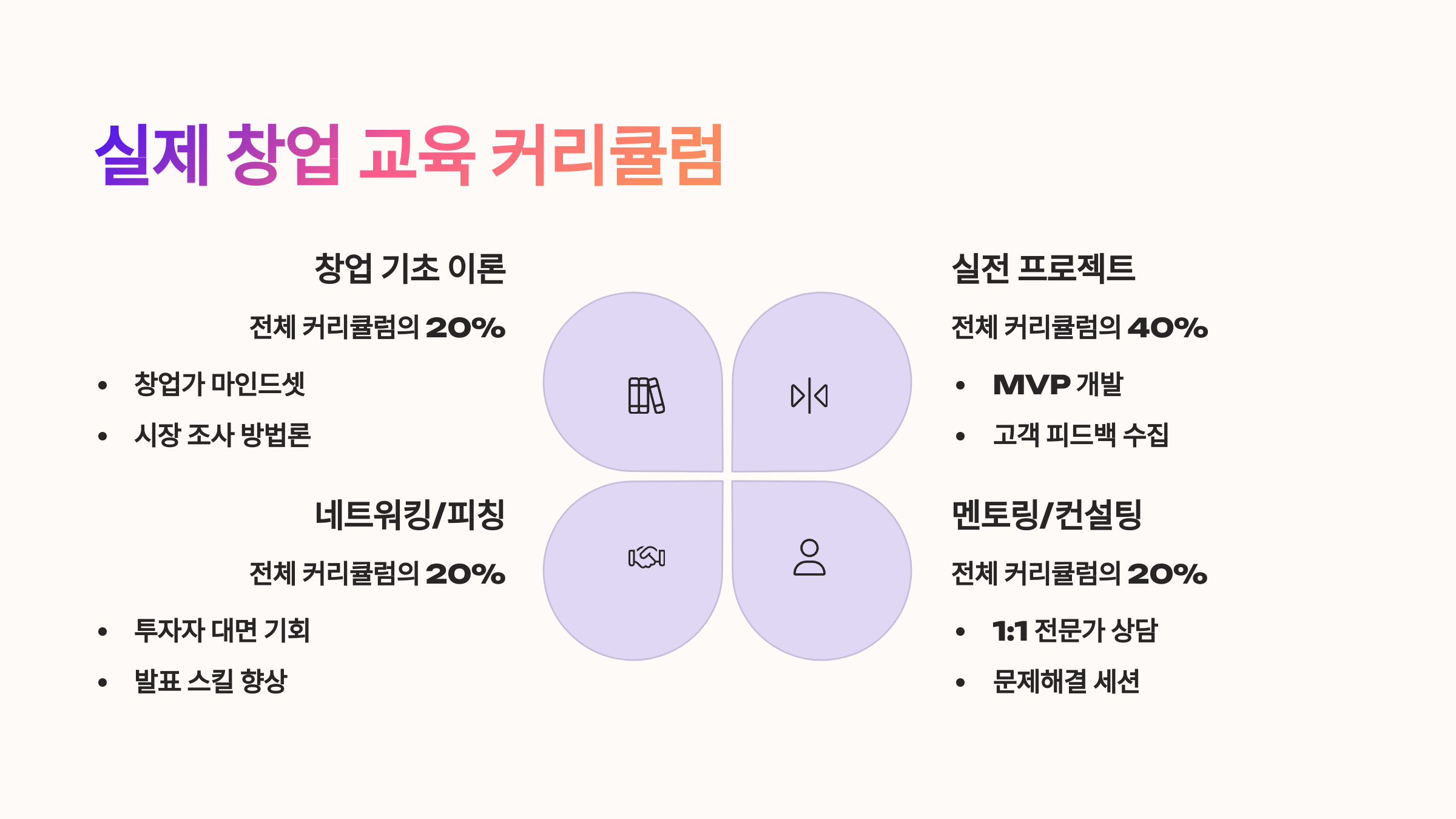 🧠 창업 교육은 요즘 정말 다양해요! 정부·학교·민간 기업 등에서 제공하며,