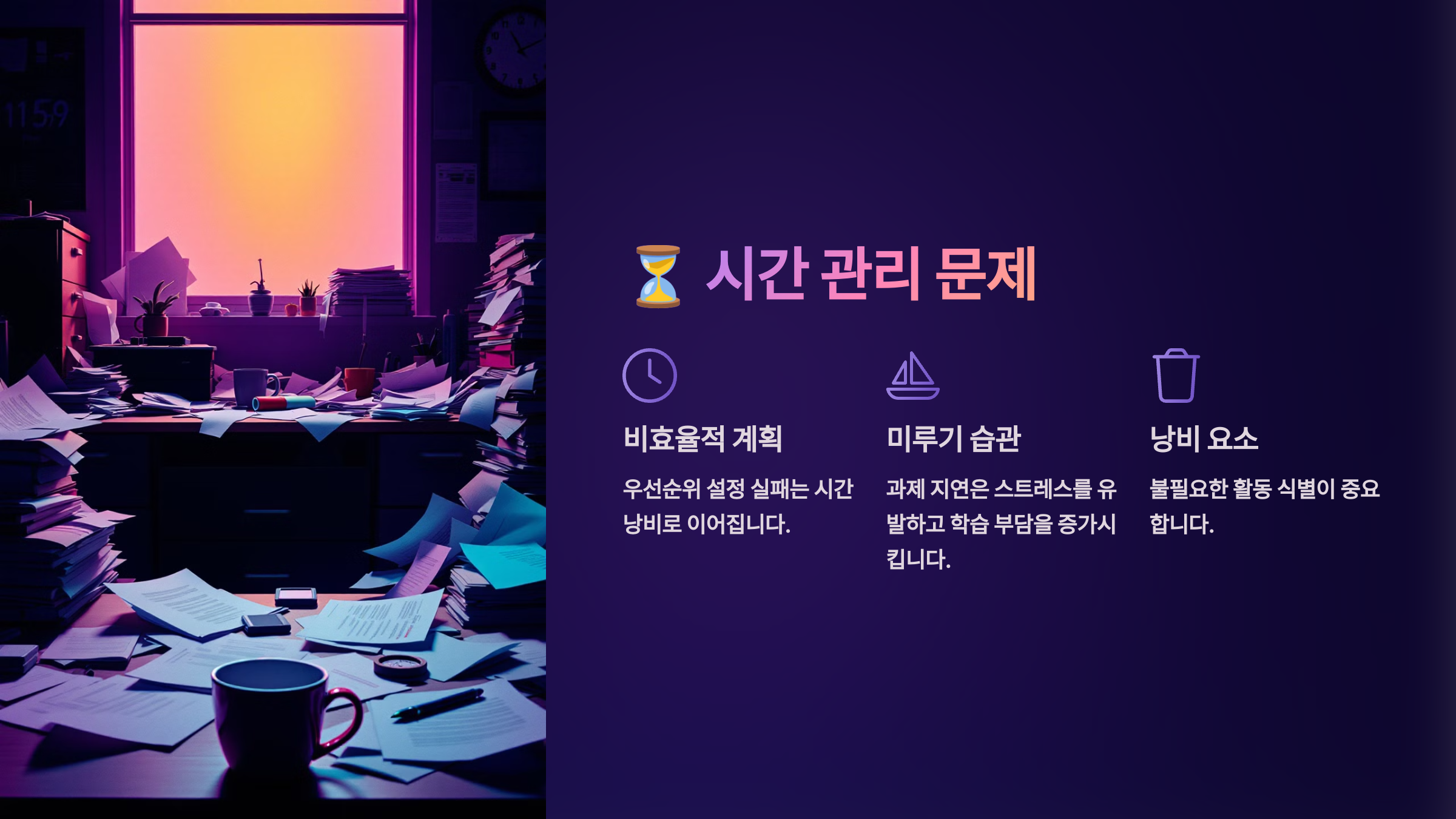 ⏳ 시간 관리 문제: 계획 부족과 미루기 습관