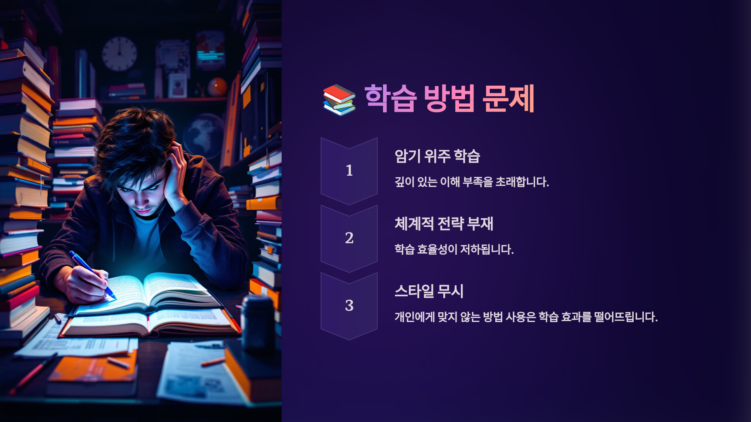 📚 자기주도 학습을 한다고 해서 무조건 효과적인 것은 아니에요. 잘못된 학습 방법을 사용하면 시간을 많이 들여도 성과가 나오지 않아서 좌절하게 돼요.