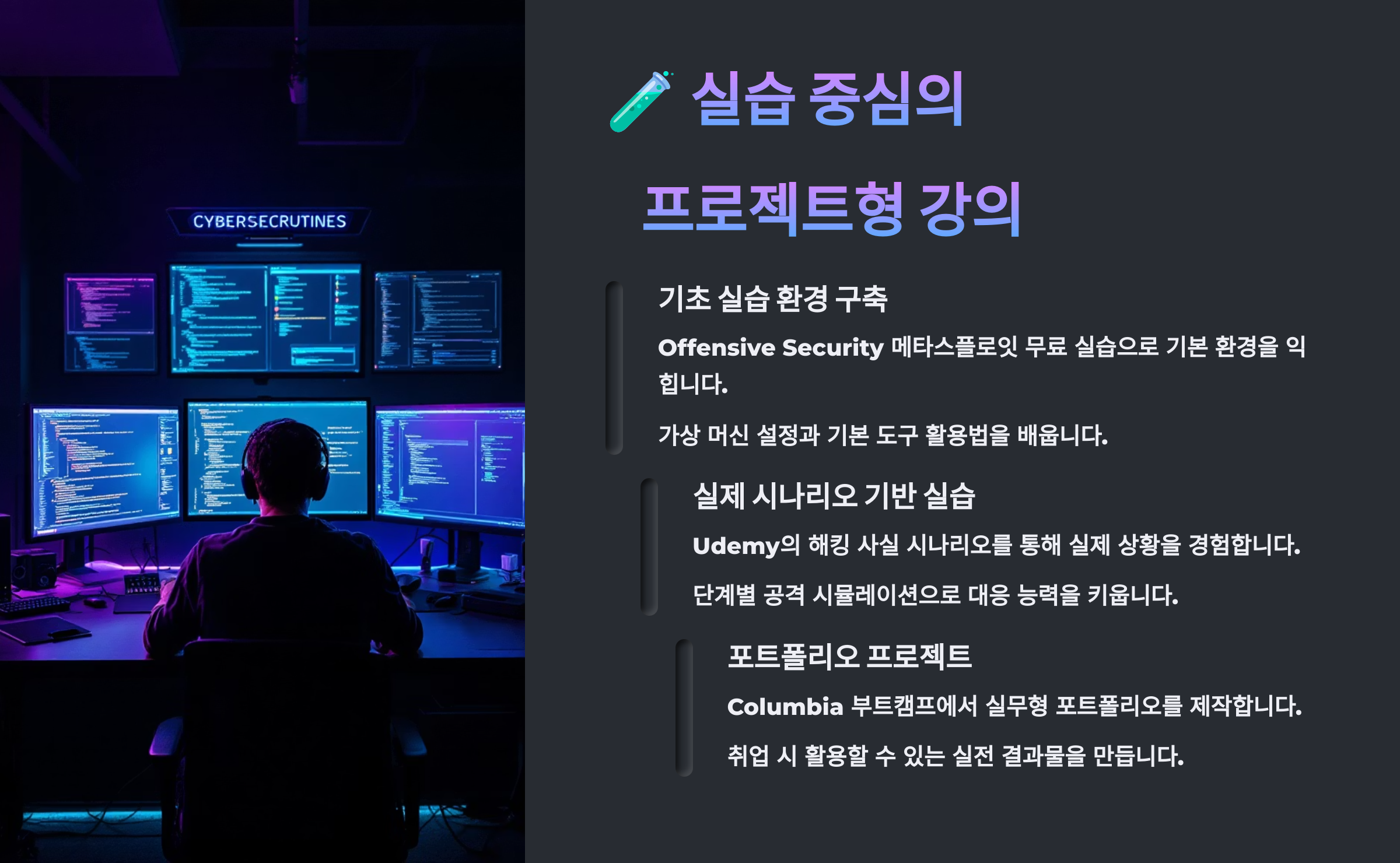 - 강사: 현직 화이트해커, 기업 보안팀 출신