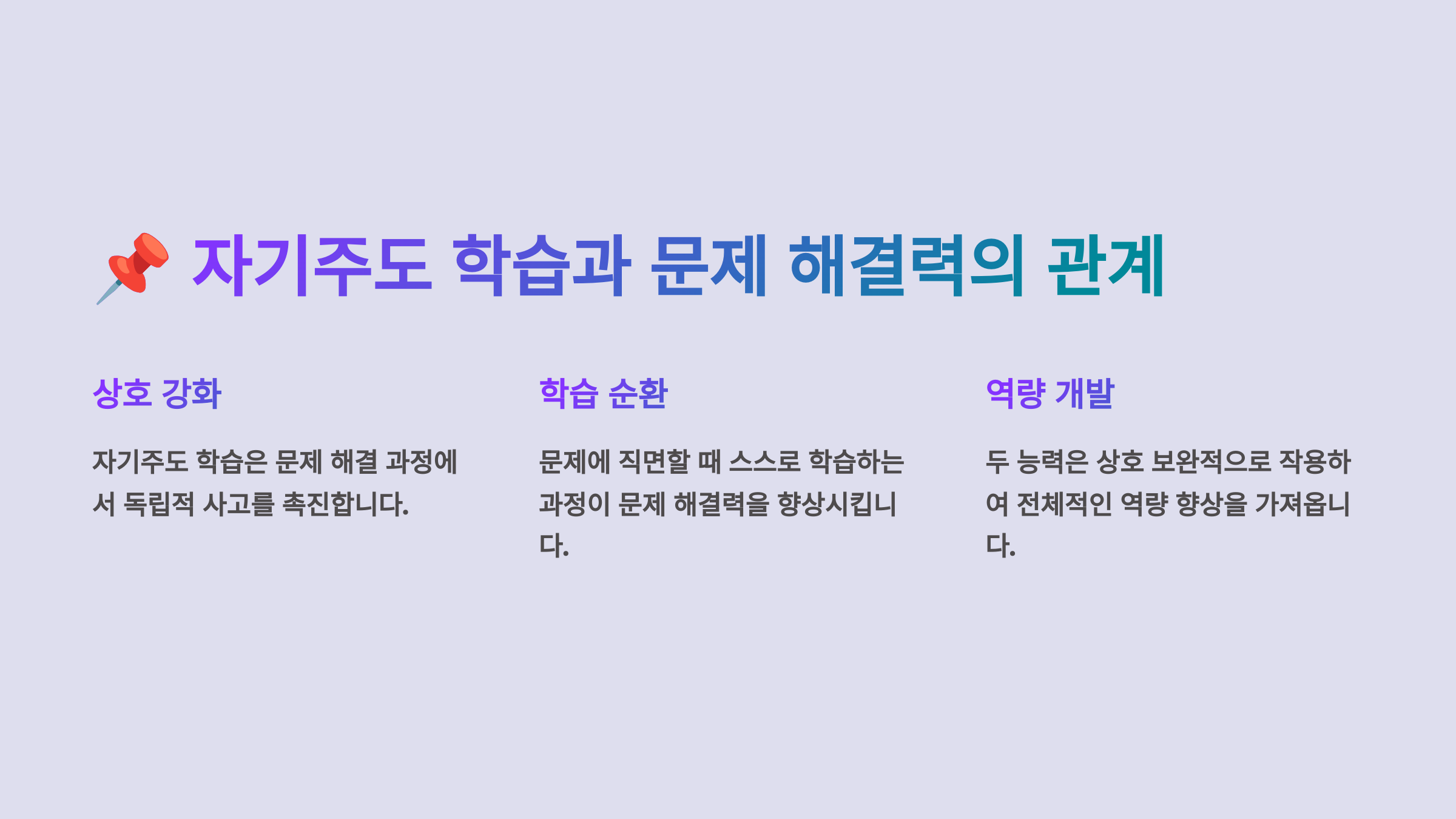 자기주도 학습을 통해 문제 해결력을 키우면 어떤 문제도 논리적으로 해결할 수 있는 능력이 생겨요! 💡