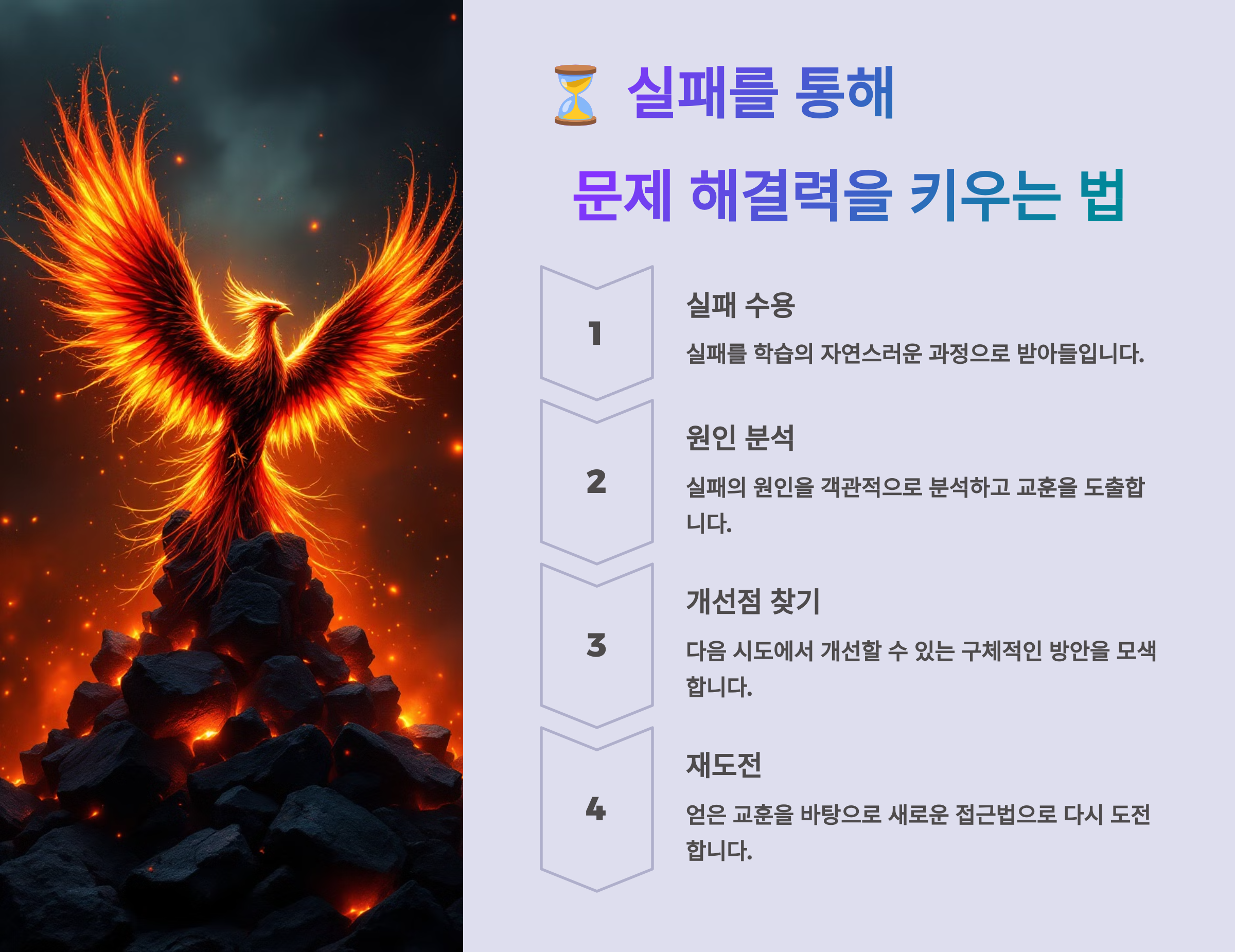 문제를 해결하는 과정에서 실패는 피할 수 없어요. 하지만, 실패를 어떻게 받아들이느냐에 따라 문제 해결력이 달라질 수 있어요. 💡
