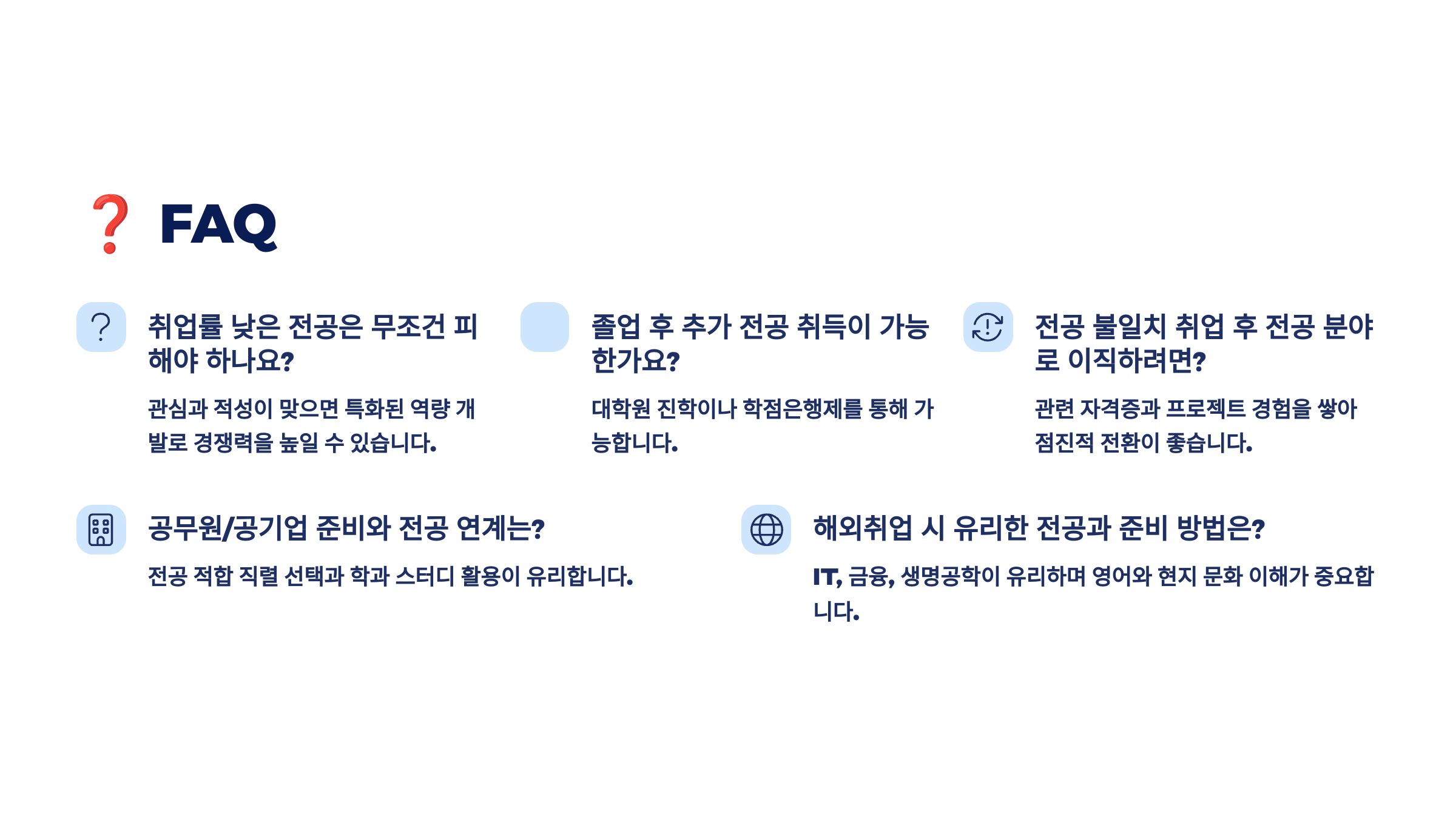다음은 여덟 번째 섹션 ❓ FAQ 전공 선택과 취업에 대한 궁금증 8가지, 현실적인 답으로 정리해줄게요! 💬