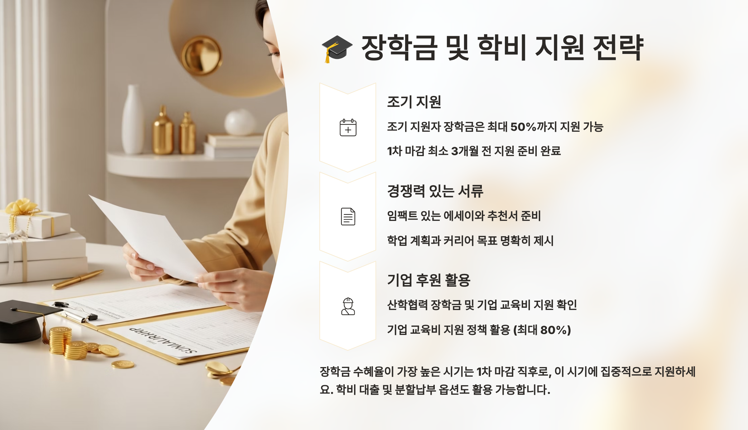 회사 학비 지원도 큰 도움이 돼요. 미국 기업들은 평균 연간 $7,500, 한국 대기업은 연간 1,000만원까지 지원해요. 삼성, LG, SK 같은 대기업은 MBA 전액을 지원하는 프로그램도 있어요. 이런 혜택을 활용하면 실질 부담은 크게 줄어들죠! 💵